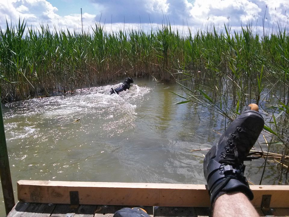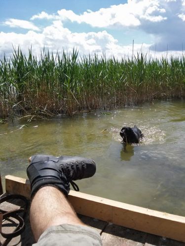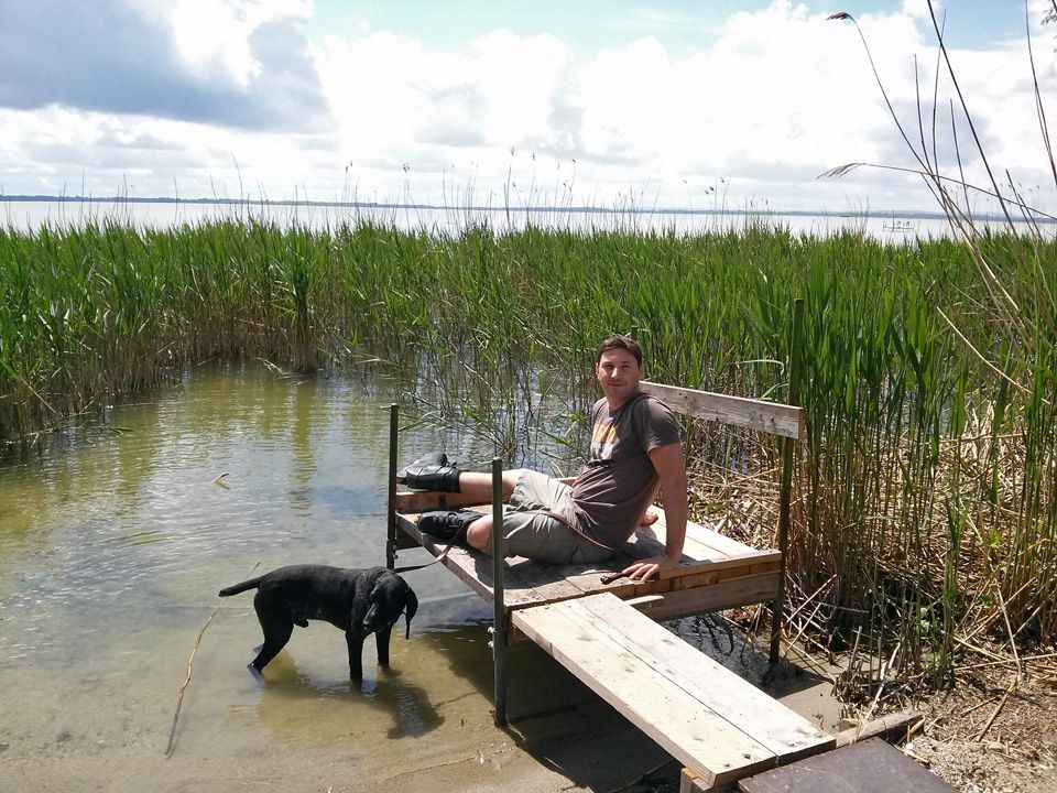 )Sajna a nádas mindkét oldalán horgásztak, ezért volt pórázon, de azért kicsit el is engedtem.