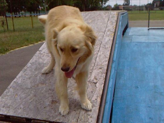 aztán elkezdett érdeklődni a szagok iránt, kapott egy kis szabit és imádta. Ezután jött a sétáltatás póráz nélkül, asszem 2 napig, eleinte végig mellettünk ment, de mostanra egy kis szabadságot is ad magának, lemaradozik, előre szalad, igazán "kutyás".