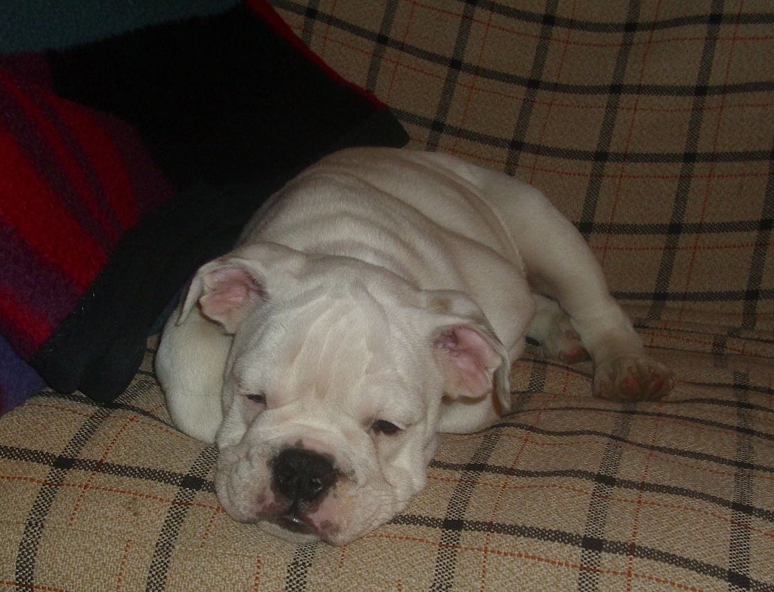 Péntek óta van itthon hellyel közzel még megy a csata ki legyen a feljebb a rangsorba szvsz Marci kutyánknak nem sok esélye van a "hölggyel" szemben mert már most nehezebb a buldog mit a fehér pamacs megy neki leszegett fejjel mint a faltörő kos aztán meg sunyin alulról elkapja a mellén vagy a nyakán a szőrt. -