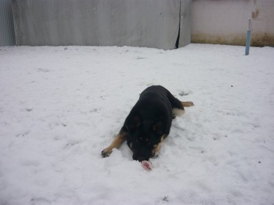 Gonzo kutya ma eletet mentett! Nagy ugatasra lettunk figyelmesek este 9 ora korul. Eppen mentunk ki, megnezzuk akkor mar, hogy mi ez a riasztas. Valami sotet folt a szomszed keritesen, elo a lampat, "je, ez a szomszed"