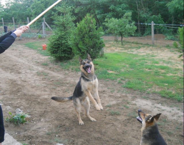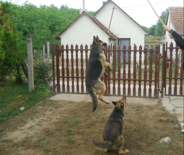 Tegnap megkapták az első verésüket a kutyáim ! Az oka az volt , hogy tegnapelőtt a szuka kint éjszakázott az utcán mert vhogy kilógott , de nem tudtam rájönni , hogy ment ki ! Erre tegnap keresem őket , 1ik sincs sehol majd , valahonnan a távolból jöttek elő és ezt ezután 2x még megcsinálták és ezért kapták a verést . Délután észre vettem,hogyan sikerült kiszökniük megbontották a kerítés drótot 2 helyen is . Aztán ezeket a lyukakat becsináltam , viszont ma megint arra ébredtem , hogy sehol sincsenek ! Kimentem az utcára és láttam , hogy az 1ik szomszéd udvarán kötekednek egy kb 3-4 éves kan német juhásszal . Nem mentek közel hozzá kb 4-5 méterre voltak tőle , és onnan ugatták ill idegesítették szerencsére meg volt kötve , így bántani nem tudta őket ! Szóltam nekik és hazajöttek , ekkor megint megkapták a verést a másodikat de sajna ebből se tanultak , sőt a szuka még morgott is rám mert bántom . Majd később , ahogy kiléptem a házból látom , hogy a drótkerítés tetejét lenyomták és a felett kiugrottak ekkor megint hívtam őket ismét hazajöttek , de nem bántottam őket inkább bezártam a helyükre őket , mert nem tudom állandóan őket figyelni !