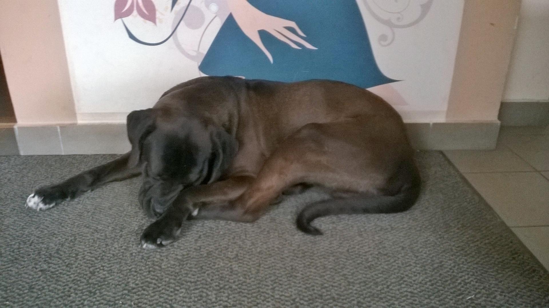 Szerintem nápolyi masztiff volt, viszont sötétbarna volt a bundája, a hátsó lába környékén volt egy-két kisebb fehér folt és egyébként semmi ránc nem volt rajta, tök sima volt mindenhol a bőre.
