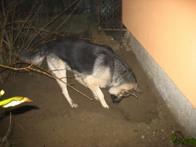 Itthon pedig nem jellemzo ra az asas, van par fix godre, azokat gondozgatja csak. A hatarban persze kiturja maganak az eger/pocok lyukakat, amig meg nem talalja a feszket/bennelakokat. Neha le is csuszik egy-egy ragcsalo, ha nem vagyok eleg figyelmes.