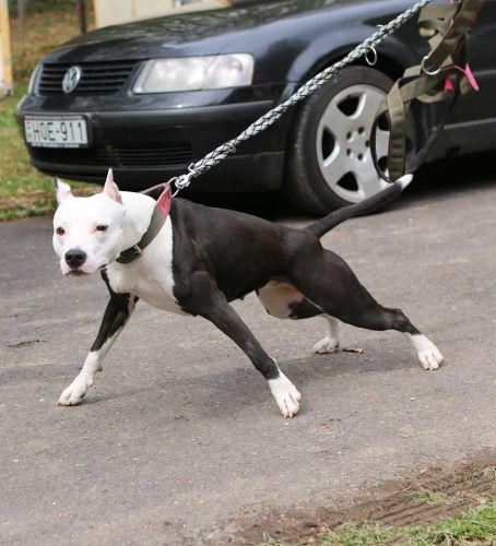 Szombat óta sétálgatunk a kis amstaffal. Egyenlőre nagyon pozitív amit látok rajta (kopp, kopp). Mind emberekkel, mind kutyákkal borzasztó barátságos és nyílt. Hála az égnek a környéken nagyrészt kulturált kutyák vannak. Ma rámászott egy labrador fejére. Csórit nem zavarta és a tulaj is nevetett. Persze véletlen volt mert csak annyira engedem hogy megszimatolgassák egymást, de a labrador egyel közelebb lépett. Hiba volt...