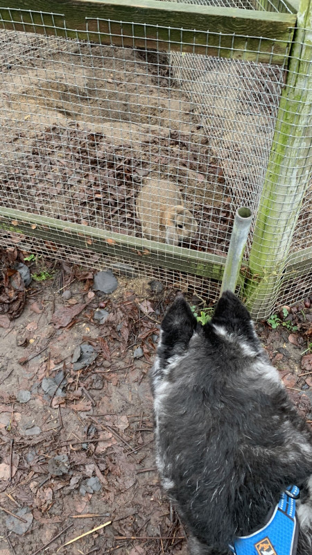 Mi is ugy setalunk, 8m-es flex porazzal, meg ha nem husky-m lenne hanem egy jol treningelt csaladi kutya, akkor is. Itt Daniaban videken nagyon sok vadallat el, vadnyulak, rokak, facanok, ozek, szarvasok, siman atrohanhatnak az ember elott es a kutyat elkaphatja a vadaszoszton.Bementunk az allatsimogatoba, kecske, lo, szarnyasok. Viszont a kedvence a nyulak, valszeg meg is kostolna oket, igy egy kis onuralom treningre mentunk be