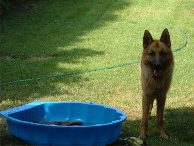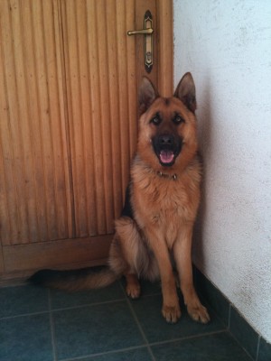 Szurok most büntiben van, talált magának pár vezetéket, azt elkezdte rágni,majd rángatni, és így sikeresen lerántotta a 1.5m magasan lévő locsoló vezérlő fedlapját, majd megrágta