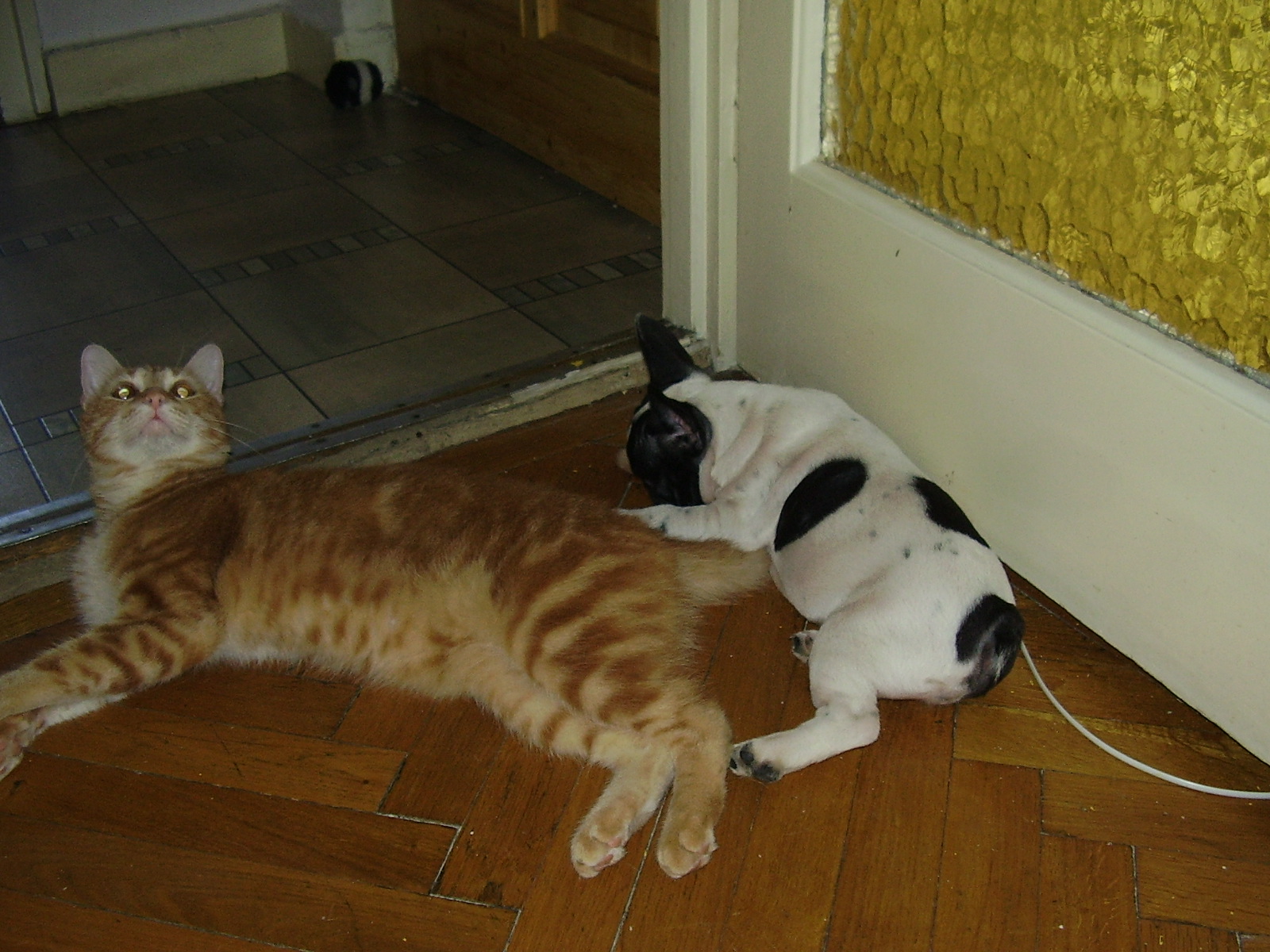 Valahogy igy gondolom én is,nagyon jól elvannak egymással,annyira,hogy most már kb fél méterre egymástól alszanak.A játék meg néha eldurvul,a kutya vinnyog,a macska nyávog.