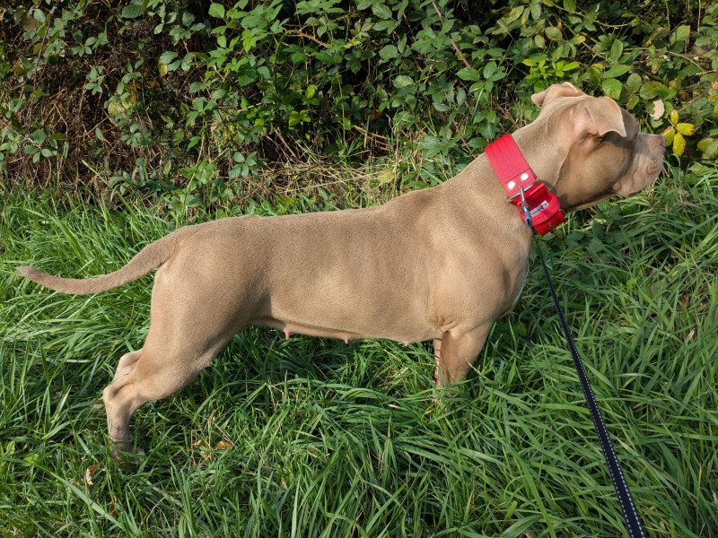 Nem amstaff, bull tipusú erős amstaff dominanciával.
