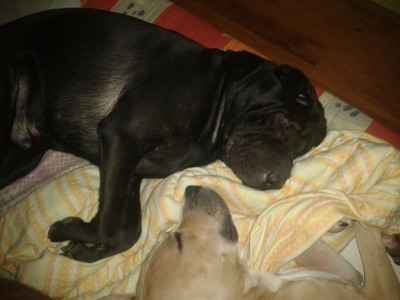 en van, hogy a 35 kilos sharpei-emmel es a 25 kilos pitemmel alszok/alszunk