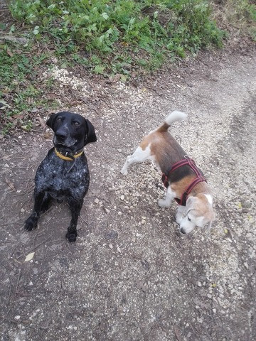 Kána-tónál egy csájé két kis valamit sétáltatott kutyaruházatban, na mondom biztos majd félti és semmi barizás nem lesz. Rögtön az elején mutattam egy új fogást neki, előzékenyen Soma mutatkozott be, megfordítottam és hagytam a két kis kutyája megszimatolja. (nem tudom megmondani milyen fajták voltak, nem háványéze de nem is a másik fehér elterjedt). Az egyik kis beszari volt mondom merre mentek gyere szocializáljuk csórikámat. Pórázra fogtam Somát és egymás mellett sétáltattuk az ebeket. Nem kellett csak pár perc és rögtön megszokta Somát. A végén már utánozta, ment utána előre felfedező körútra. Mai jó cselekedet pipa.