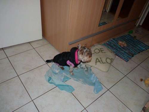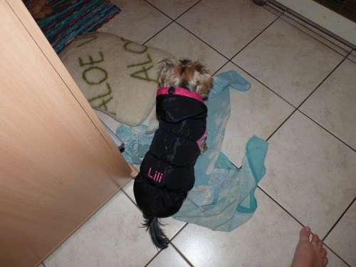 Igen nagyon kell neki a ruha mert rettentő vékony a "bundája" tényleg olyan minthacsak haja lenne. De most van neki kettő is így van váltás. Viszont egy hámot még kellene neki nézni mert most csak egy nyakörve van.