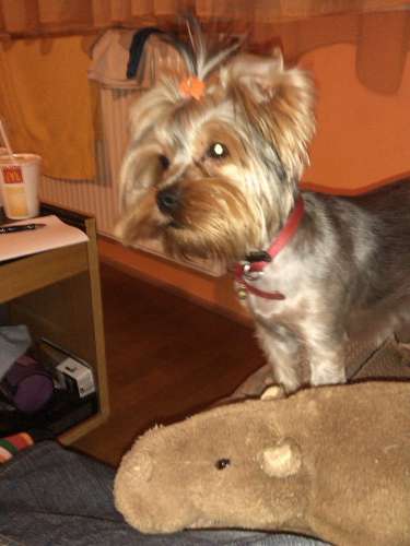 Szuka vagy kan? Mert még kannál megértem de az én kutyám szuka így kissé fura. Egyébként egy plüss vizilova van amivel ezt csinálja, kb fele akkora mint maga a yorki.
