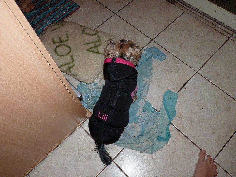De tényleg nagyon szerethető és aranyos kis kutyus. Ezekre a hideg időkre csináltattunk egyéni kis ruhát is neki.