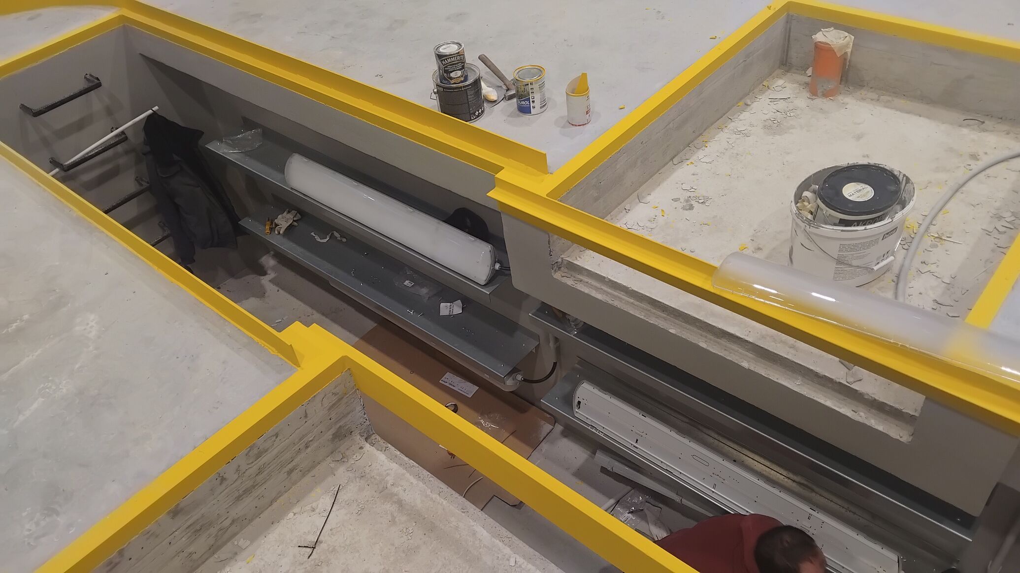Vízzáró beton, műgyanta felületképzés, saválló polcok és lépcső, inverteres lámpák, meg annyi ugrabugra, hogy egy hónap volt ide csinálni a betonszerkezetet...
