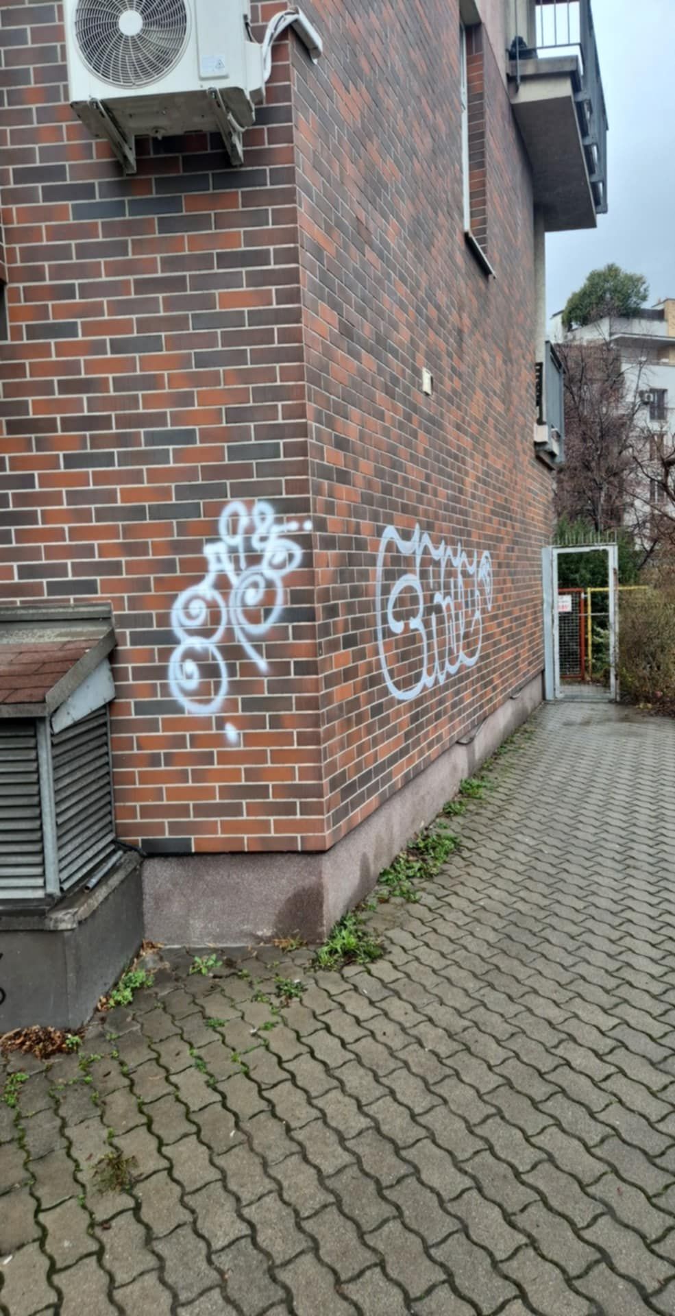 Társasház. Szombat reggel írta ki valaki a ház fb-csoportjába, jujj, összefirkáltak, "pénteken még biztos nem volt ott".