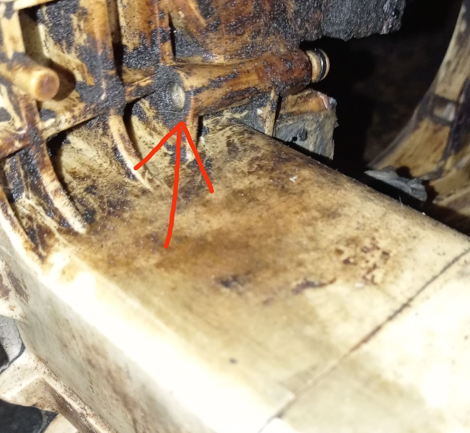 A stihl 038 hengertalp a alatt valamiért dupla tömítés volt. Lehet, hogy egyik oldalt jobban meghúzták a talpcsavart, vagy nem tudom.