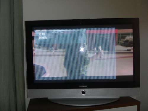 Az ő képét és hibaleírását mellékelem mert pontosan ugyanazt produkálja."A készülék bekapcsolásakor függőleges csíkok jelennek meg, melyek pár másodperc múlva eltűnnek, de csatornaváltáskor újra megjelennek. A menü bekapcsolása esetén végig csíkos marad a felület. Ezen kívül egy idő után a színek is kifakulnak, illetve vibrálni kezdenek."
