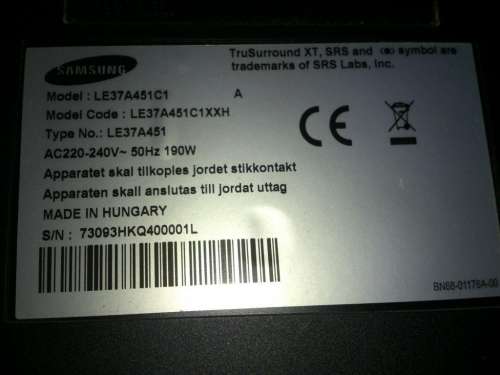 SZIA! KÜLDÖM AMIT TALÁLTAM A TV-N. MODEL CODE: SAMSUNG LE40A536T1FXXC, SERIAL NO: AT4F3SKS100193L, VERSION: CN01, VAN MÉG EGY ÍRÁS: BN68-01530A-01.