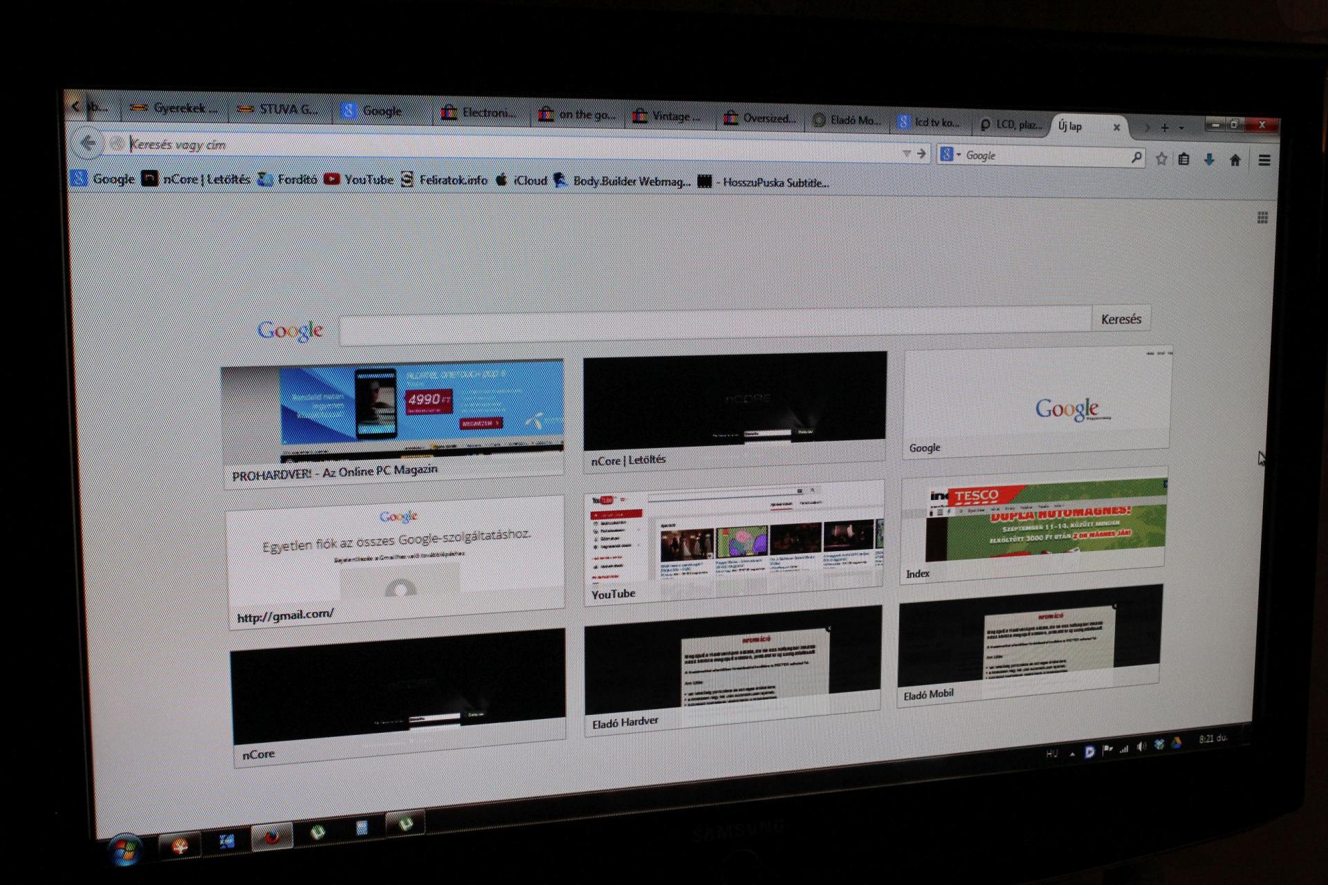 Egyszer csak bekapcsolásnál drasztikusan lecsökkent a fényerő, és mintha nagyon kontrasztosabb is lenne a kép, kicsit nehéz visszaadni, de megpróbáltam lefényképezni. Ha tolok rá egy kis fényerőt, akkor sem lesz az igazi, mert a színek is nagyon kifakulnak. Ezen felül -főleg a böngészőben való görgetésnél látszik (erre van kötve a PC), olyan, mintha szúnyogháló mögül nézném az egészet (sajnos nem tudom jobban körülírni), csíkos lesz hosszában és széltében is kép.