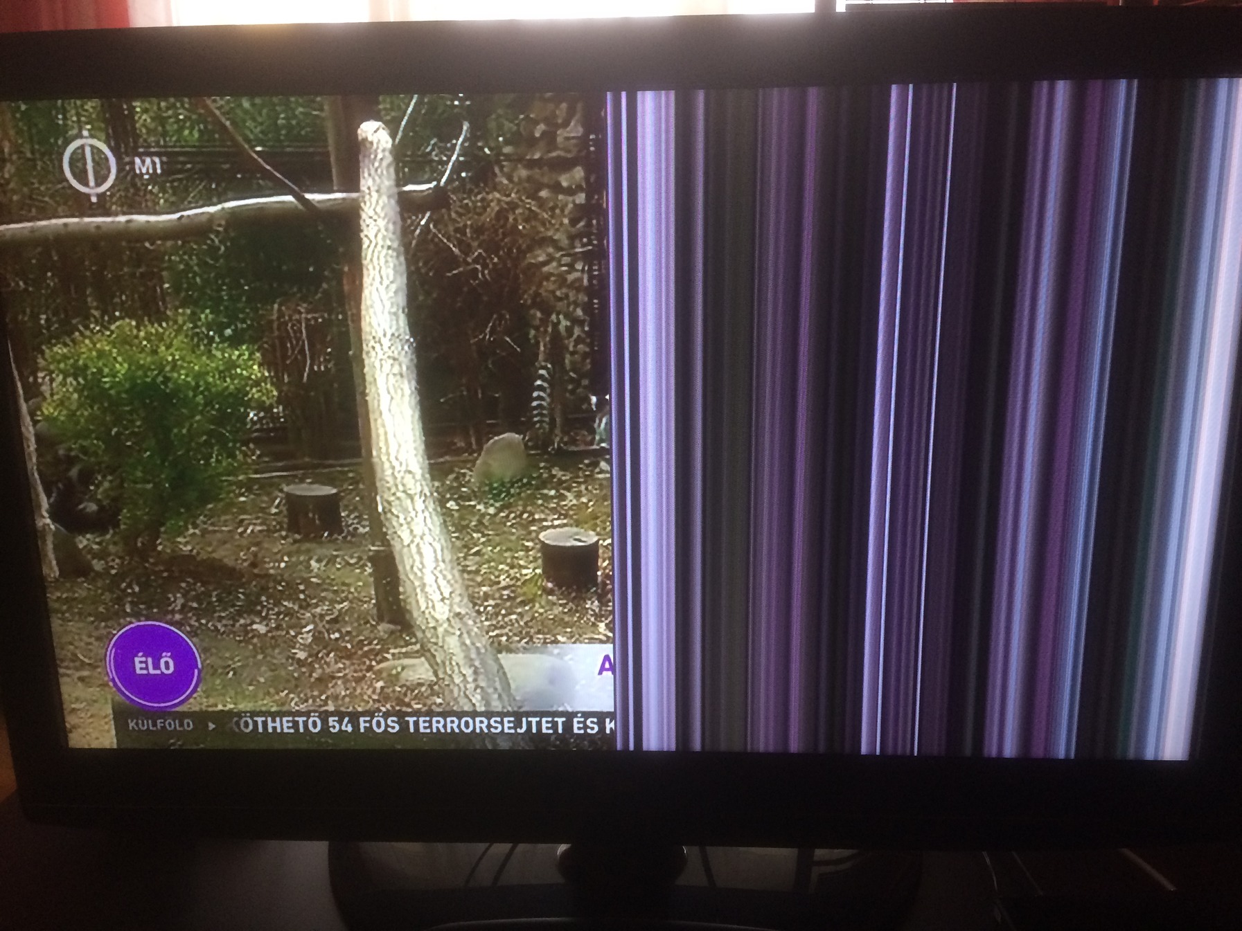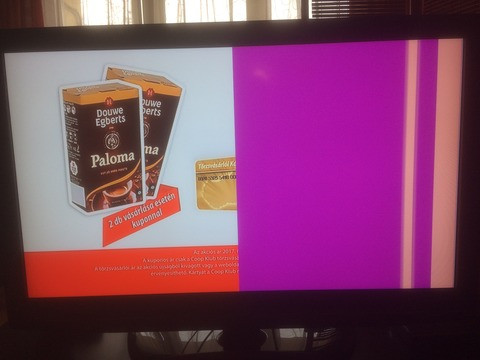 bekapcsoláskor a jobb fele színes, függőleges csíkos
