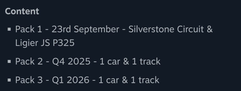 [TraxionGG-s videó]-s beszámoló a versenyre készített preview verzióról. Először a Ligier JS P325 LMP3 jön a 3 db LMP3-ból. Tippre lehet ingyenes verzióként, hogy mindenki mehessen az adott osztályban, lásd GT3 esetén McLaren, Mustang.