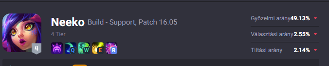 A Neeko meg szegény, hát még mindig egy nagyon elfeledett és gyengécske hős.... Most néztem csak meg a jelenlegi statjait, hát elég beszédes, pont így érzem én is: