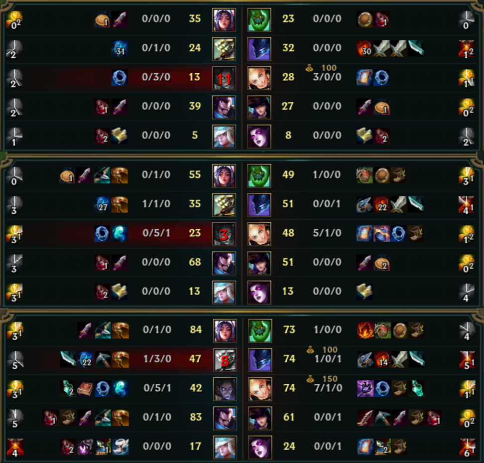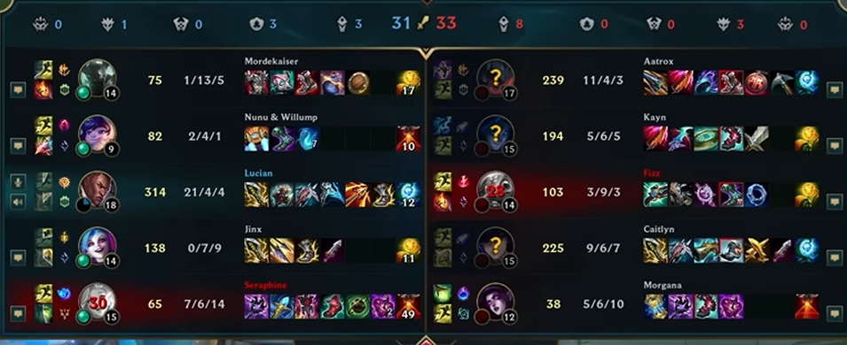 És igen ez megint pont engem igazol: a Morde látod, na ő rá én is azt mondom, hogy nem játszott jól PEDIG ott volt a Lucian, akkor a Morde miért van 1-13-5-ben? A Morde miért van 1-13-ban amikor volt egy carry a csapatban? A Sera miért van 7-6-14-ben eközben?