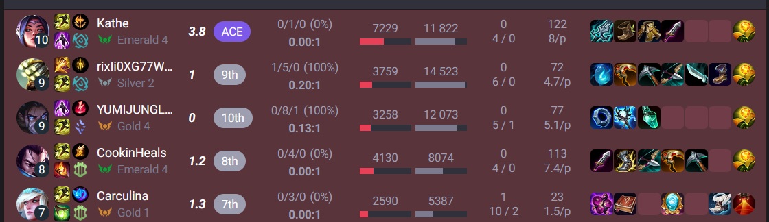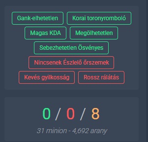 Én magamat a rangon belül egy kimondottan konzisztens játékosnak tartom, szinte mindig akár win akár lose lesz az eredmény, ott vagyok a csapatom top2, de legrosszabb esetben is top3 játékosában. DPM.lol pontszám kiértékelőt szoktam nézni és a DPM-es végpontszám nálam mindig megüt azért a meccs képéhez képest egy elfogadható szintet.