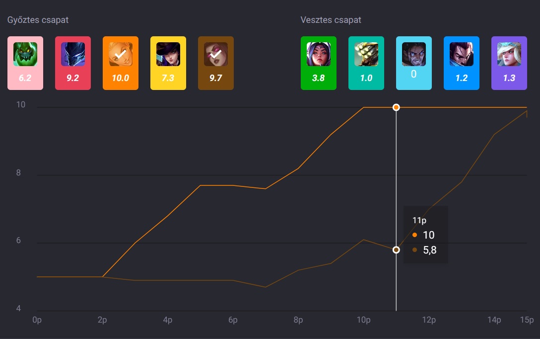 Tehát konkrétan a meccs első 2/3 ideje alatt a Luxon kívül nem volt senkinek előnye a többiekkel szemben, majd a 12. percben Lux boton duplakill megvan a 10. killje, és már 3szint előnye.