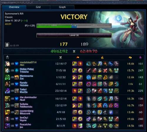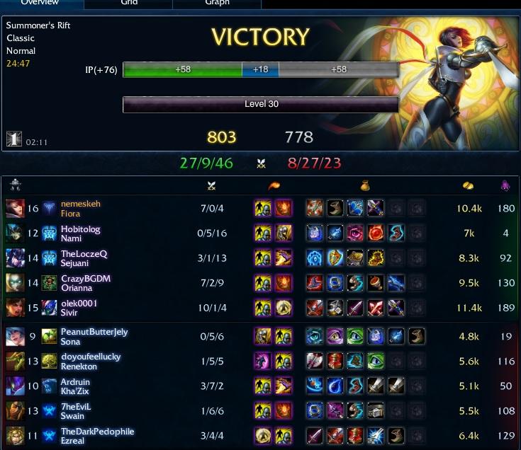 sajna a statom nem olyan jó vele de rengeteg gamet lehoztam már, volt amit nem lehett persze nem annyira op carry mint néhány másik de amikor szembe ultizol 4 embert azt nem lehet megunni. Mondjuk nem egy könnyű champ az ténya yi ellen meg vettem spellvampot és kihealeltem amit alpha strikeozott, utána már nem is féltem tőle megvártam míg elnyomja utana lecomboztam q-w-e.vel.