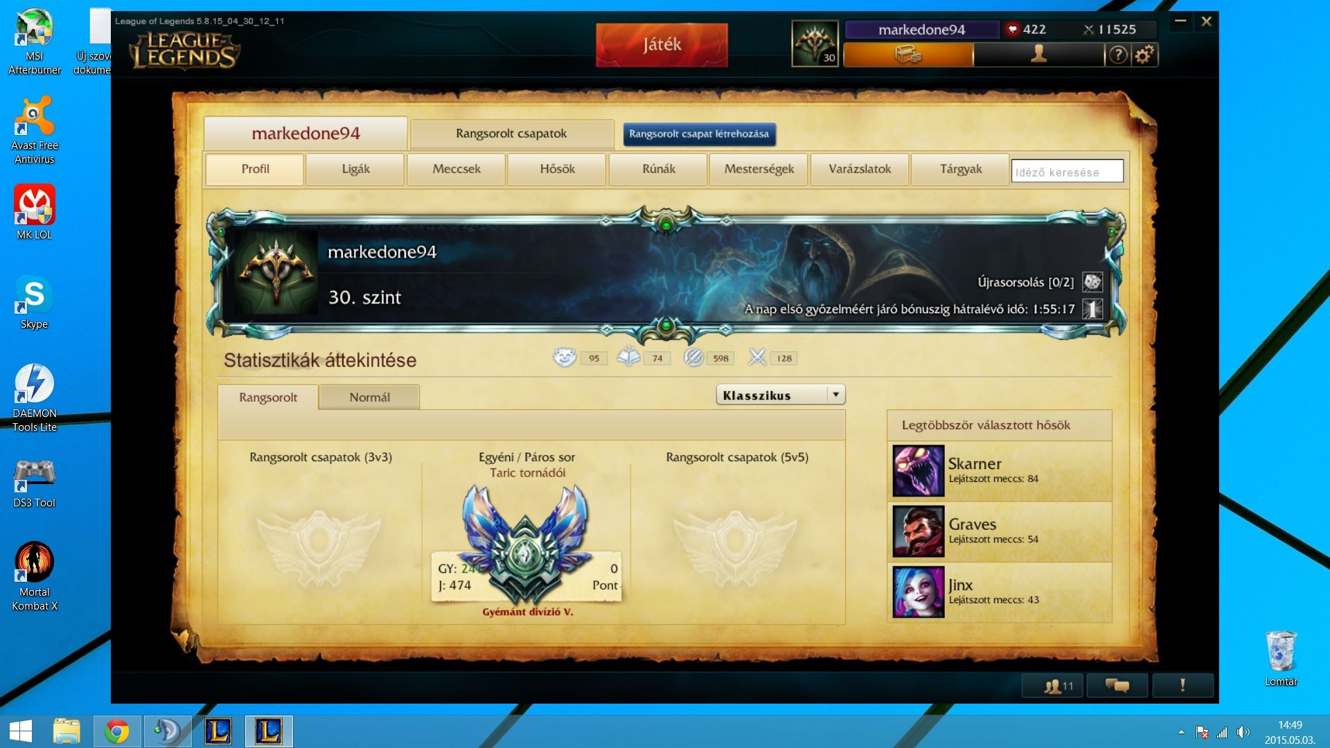 EUW-on ranked is mehet Gold II-III környékén vagyok.