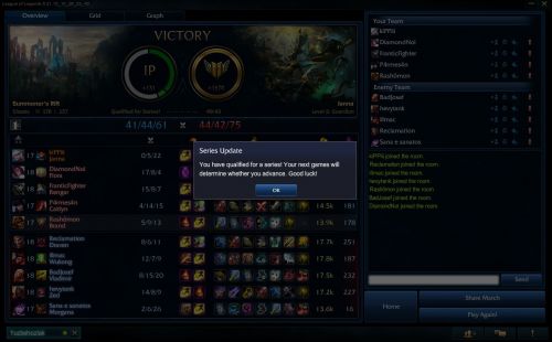 Látom ma mindenkinek jó sorsolások vannak. Yoda-val most... Garen... szétfeedelte az ellen Garen-t..végére valami 17 killje volt Garennek...ebből vagy 11 a mi Garenünk volt... Master Yi...fél afk majd kb mintha ott sem lenne. 3an végül nem is értem, hogy de lehoztuk