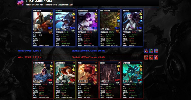 Legalábbis 20%-kal rontod az esélyeiteket, ha magaddal rántasz egy két embert akkor már 60%-kal romlottak az esélyek.Amúgy Lolskill gyakorlatilag semmit nem ér. Akkor kell kicsit jobban figyelni (nem elhinni, hogy jobbak nálunk!) mikor meglátsz egy olyan statot: 30 normál win, 50 ranked és abból 40-et megnyert. Az a Smurf. De én ezen a Lolskill képen nem látok egy ilyet se. Persze attól még lehet de az ritkább eset.