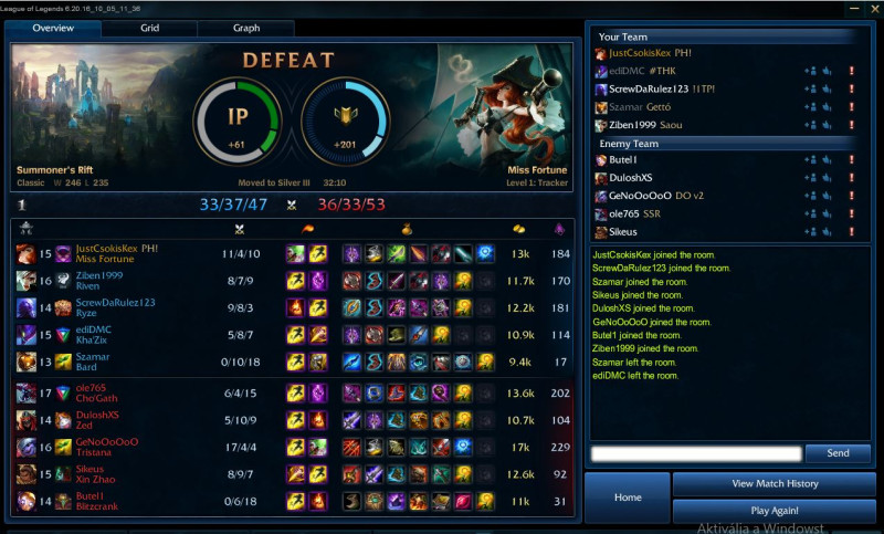 Most lehet én is szemét voltam. Behívott mid-re, és Lux-ot akartam vinni. A toposunk megkérdezte, hogy jöhet-e mid-re, írtam hogy nem tudok top-ozni, sose próbáltam (ez így igaz, pvp-ben ez az egy role ami még sose volt a kezemben). Bár amúgy lehet benne lettem volna, sima normál, legalább kipróbálom, de mire megírtam fentieket, már kibannolta a Lux-om. Első pick enyém volt, és belátom nem volt bölcs, de elhoztam Katarina-t úgy, hogy az enemy ennek tudatában hoz amit akar. Nem értem, miért kell ilyen gyerekesen ha nekem nem jó, másnak se legyen az mentalitást gyakorolni (bár én is lenyugodhattam volna, és hozok Ahri-t pl.). Amúgy szívesen katáztam volna amúgy is, de mivel enyém volt first pick, nem akartam úgy elhozni, hogy nem tudom ki van ellenem. De így alakult, bár még így is én voltam (lehettem volna, ha nem adjuk fel jogosan) a fő carry csapatunkban. Ha így nézzük, Lux-al is bukta lett volna a meccs.