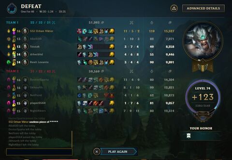 Az az általános válasz/reakció erre, hogy nem számít, mivel one for all. Ugyanígy aram, bot meccs, normál, bármelyik egyéb event mód ugyanígy lényegtelen legtöbb ember számára (állításuk szerint). Sőt, a flex is le van nézve. Vagy menjünk tovább solo/duo, ott is low elo nem számít nyersz vagy vesztesz. Természetesen ezek csak kifogások, én legalábbis nem látom miért logikus úgy nekimenni egy meccsnek, hogy nem érdekel a győzelem. Akkor miért játszanak?
