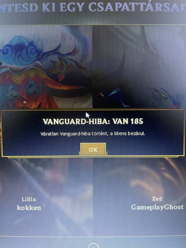 A vanguard telepitese picit rontott ezen,az elmult par honapban kb. 50-100 gamere jutott egy crash. Ez meg boven belefer, viszont ez a Vanguard eleg alapos. Mostanaban bovitgettem a gepet, fel even belul a 3. cpu-alaplap parost nyustolom. Azt vettem eszre, hogy a legkisebb hardver valtozast is kiszurja. Ma csak annyit csinaltam, hogy a ket ramot a slot 1-3 bol atraktam a slot 2-4 be, mivel utolag megtudtam, az AM4-nel oda kell, hogy ne 2666-on menjen a 3200-as ram. Most is az elso inditasnal szolt a Riot kliens , hogy ujra kell inditani minimum ot, de lehet, hogy az egesz rendszert (eleg volt amugy a kliens). Ezt minden alkalommal el kellett jatszanom, amikor valamiléyen hardver valtozott, de arra nem szamitottam, hogy meg a slotcseret (vagy freki emelkedest 2666---> 3200) is kiszurja. -