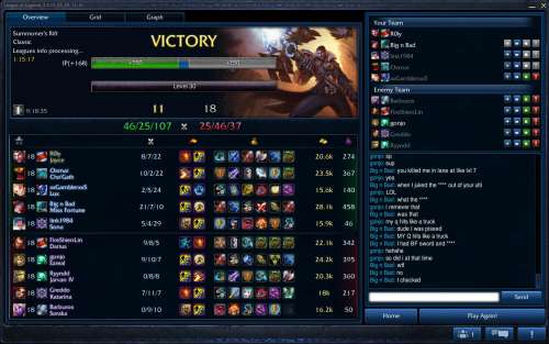 Sikerült átélnem 1 ranked csodát... Mindenki minimum 4es KDA-val a teamünkből, boton Varus, Nami páros aláztak(4-ik perben vette Varus a BF-et és 6-ik percben a BT-t) persze mindezt azért, mert a jungle Udyrunk nagyon szépen csinálta a dolgá, meg mert az enemy supportja 1 hibát vétett a legelején, természetesen 20-ik perben fel is adták, hisz mi mást tehettek volna, mikor Varus bárkit 2 hitelt