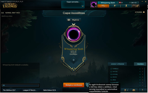 - első meccs előtt beválasztottam azt, hogy fill (tudtam, hogy support leszek, de nem volt kedvem más role-ra várni). Bedobott supportnak, majd a champ selectnél írt a gyerek, hogy cseréljünk support-><-jungle, mert premade bot-os ahaverjával, így cseréltünk