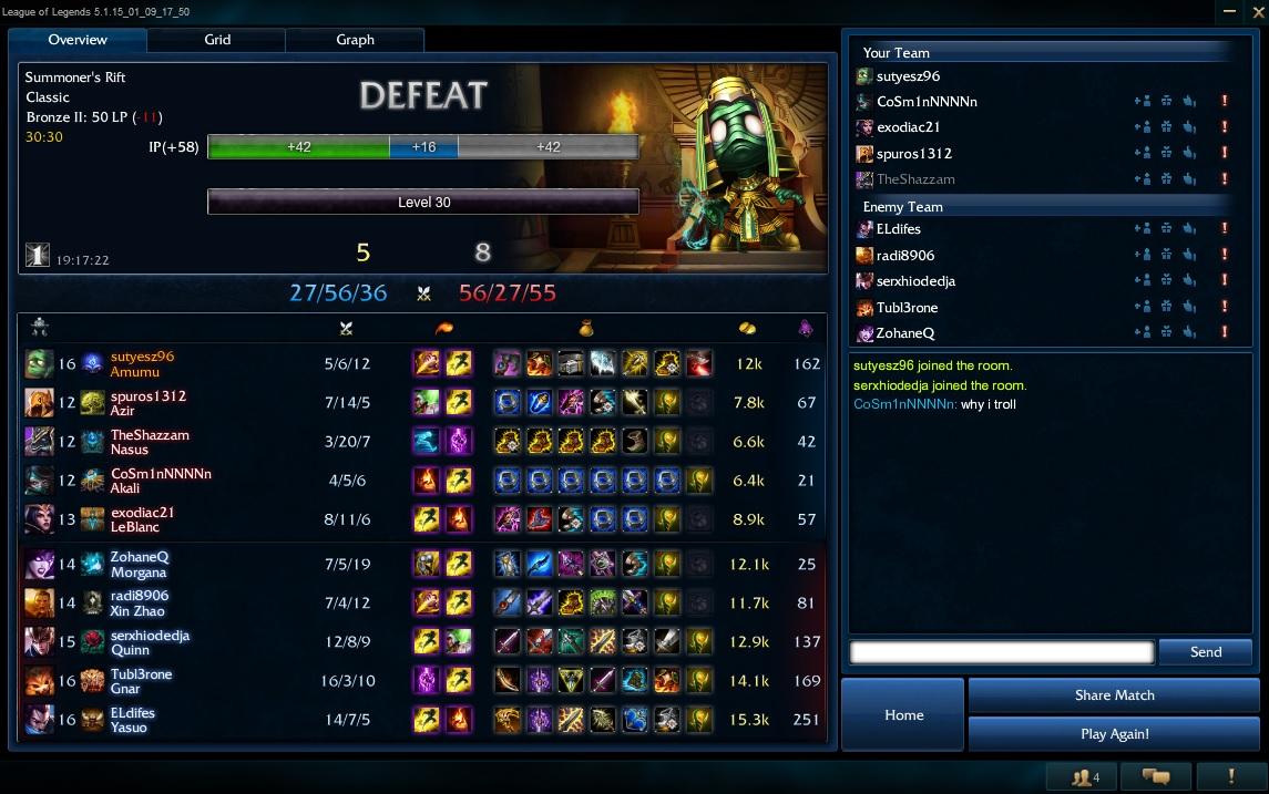 Ne gyere nekem azzal hogy "úgyis oda kerülsz ahova való vagy", amikor a ranked játékaim 50-60%-ában trollokat, anyámat szidó hülyegyerekeket, midorfeed típusú értelmiséget, és feedelőket kapok.