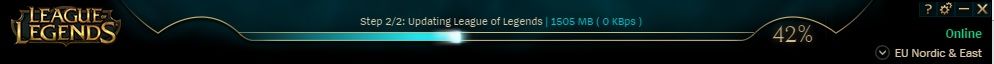 Tegnap éjszaka patcheltem volna 5.3-ra, de megállt 40% körül. Utána láttam hogy a Riot is érzékelte a problémát, úgyhogy ahogy ajánlották újraindítottam a patchelést. Ez természetesen azzal járt hogy végigszkennelte mind a ~10000 fájlt, röpke 90 perc alatt.Ma ismét az fogad, hogy szkennelés, és már megint legalább egy órája várok rá hogy végigolvassa az összes tetves fájlt.