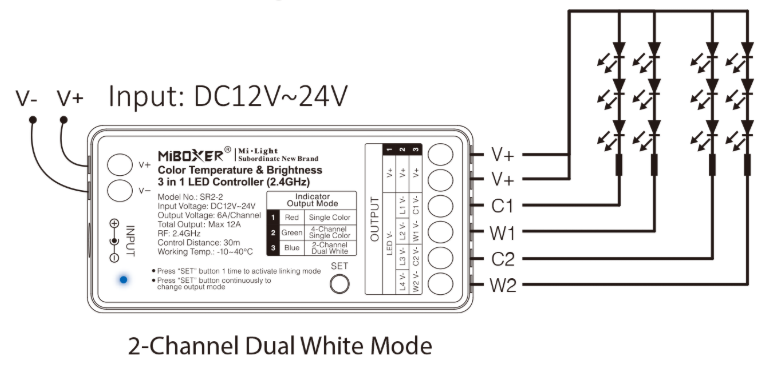 Viszont szeretnem a ket LED szalagot különböző színnel használni pl.: felül kék, alul sárga.