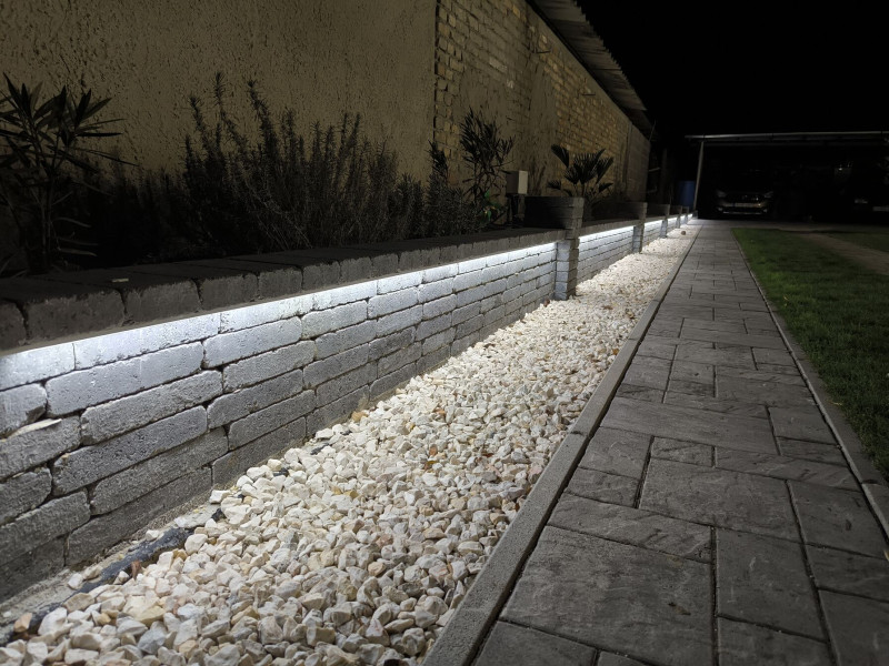 Érdeklődtem korábban kültéri LED világítás telepítése miatt, akkor kaptam pár tippet ami alapján elindultam, azonban a végén kérnem kellett egy ismerős villanyszerelő segítségét is aki segített a kotésekben, mert eléggé elvesztem. Végül minden szalag két oldalról meg lett táplálva, és minden betáphoz egyedileg húztunk vezetéket.Felkerült egy mozgásérzékelő a kapura, így kapu vonalán történő áthaladás esetén is felkapcsol, valamint egy Shelly wifis kapcsolóval távolról is felkapcsolható hangulat világításnak. Szerintem baromi jó lett, bedobom, hátha valakinek segít ötletelésben.