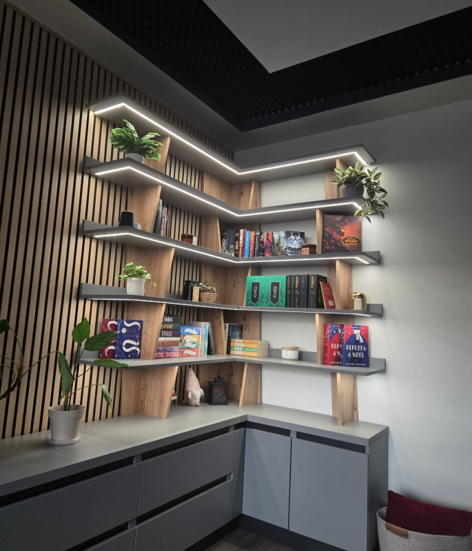 - illetve butorvilagitas egy vitrinben meg a konyvespolcon (detto 24V CCT szalagok)
