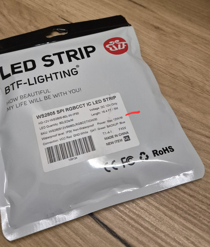 WS2805 ledszalag csomagolásán 12W/m van megadva.