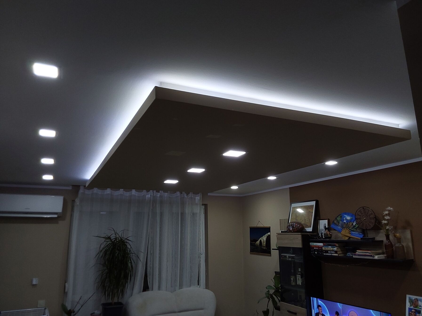 A jelenlegi bérlemenyben van egy ilyen indirekt világítás, ami egy leengedett gipszkarton dobozolásba rakott LED szalag... Magát a fényt, amit ad szeretjük, viszont a dobozt, ami körülötte van annyira nem.