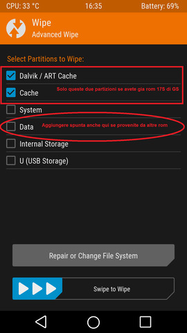 Aztán, ÉS EZ NAGYON FONTOS!!!,ne menj a System Rebootra, hanem előtte lépj vissza a WIPE menübe, és csináld meg ismét a kép szerinti tisztítást!!!