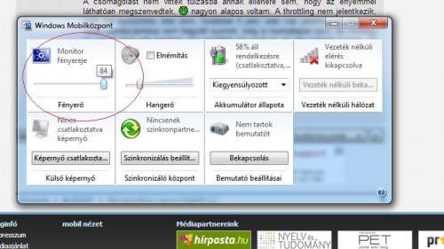 egy fórumtársat ,aki Lenovo G580-al (20150) rendelkezik ,és W7 64 bit-es op.rendszert használ ,hogy legyen oly kedves ránézni a mobilközpontban az alábbi képen látható opcióra . Kíváncsi vagyok ,hogy nála(tok) is 84 % a max. fényerő ?