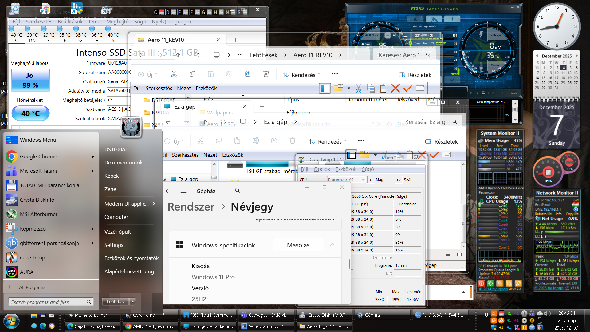 Ugyanez a gép, Win11 alatti összesítő - a tálca ne tévesszen meg, fut a RetroBar, tehát ez nem Win7, hanem Win11: