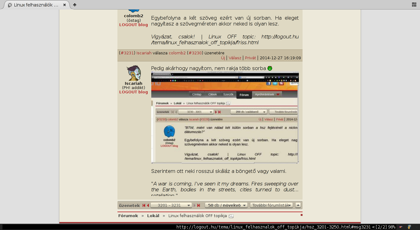 BTW, miért van nálad két külön sorban a hsz fejlécénél a nicknév és a dátumozás? -