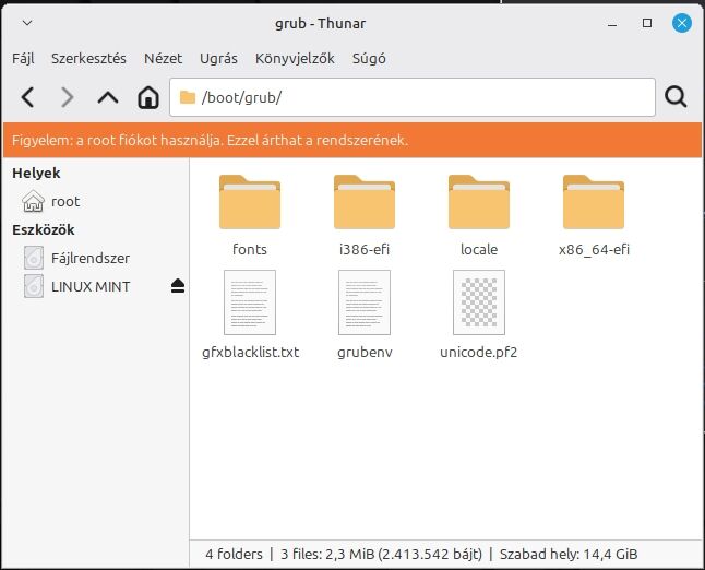 Nálam nem volt grafikus gparted a telepített rendszerben (linux mint xfce 64) és nem is tudtam elővarázsolni (sudo apt-get install gparted) ra azt mondta már van, gondolom ez csak parancssoros. Elengedtem, használtam ami van. Ahol neked debian könyvtár volt, ott nekem nem volt.